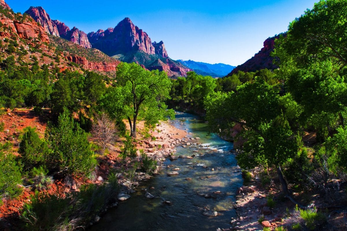 Zion National Park showcases towering red rock cliffs and the awe-inspiring Zion Canyon.